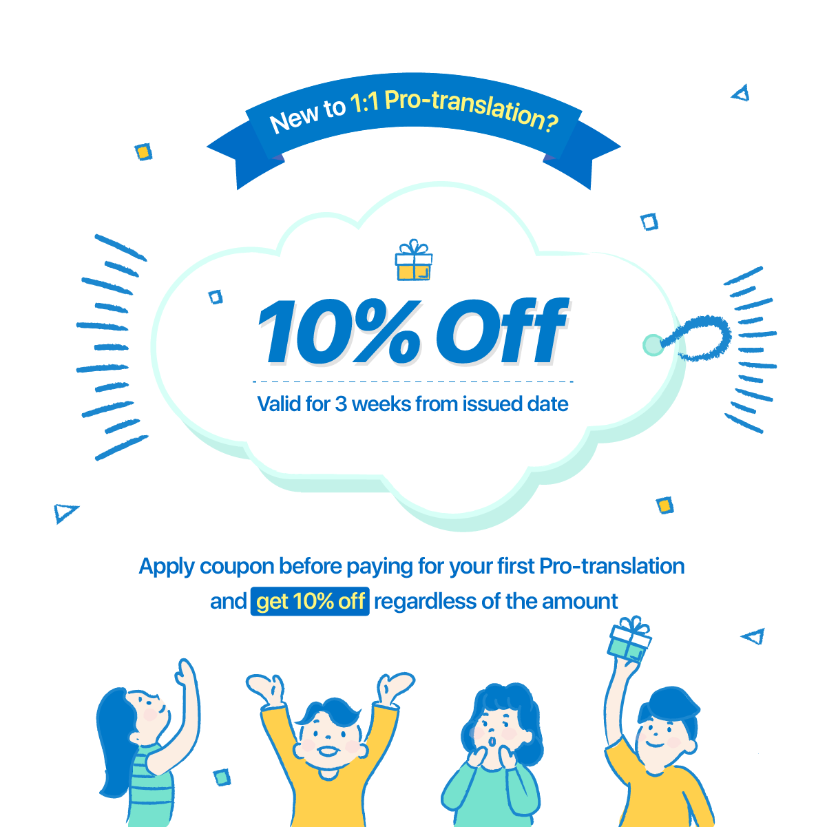 - 1. Купон со скидкой 10% можно применить при первом использовании перевода 1: 1 Pro.